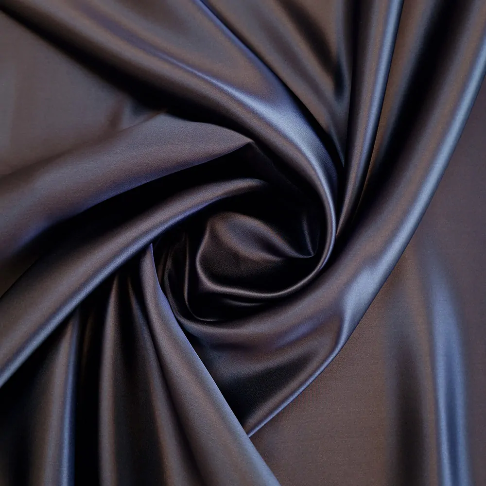 Luxusní hedvábný double satén vyšší gramáže, oboustranně použitelný, obě strany v saténovém provedení s matným leskem. Složení 100% hedvábí, šíře 140 cm, měkký, dobře tvarovatelný, nesplývavý, neprůsvitný. Vhodný na šaty, sukně, kalhoty, saka, kostýmky, večerní, slavnostní i každodenní oděvy. Barva šedá s nádechem do fialova.