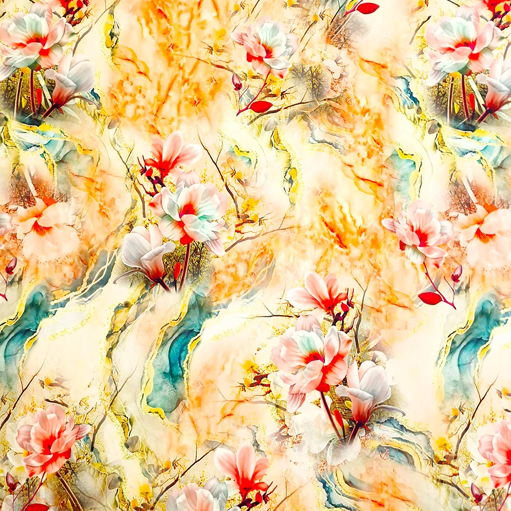 satén, barevné květy