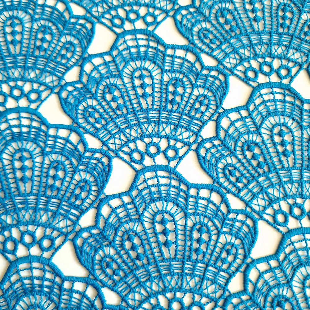 Krajka Macramé, 100% polyester, šířka 135 cm v petrolejové barvě