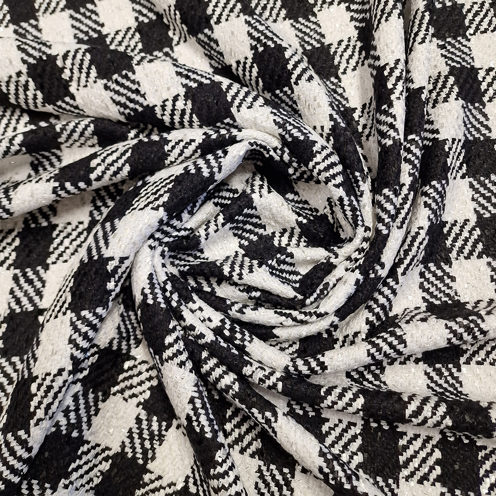 Kostýmovka typu Chanel, 45 % viskóza, 35 % bavlna, 15% polyacryl, 5% lurex, šíře 130 cm, vhodná na kostýmky, saka, sukně, pouzdrové šaty.