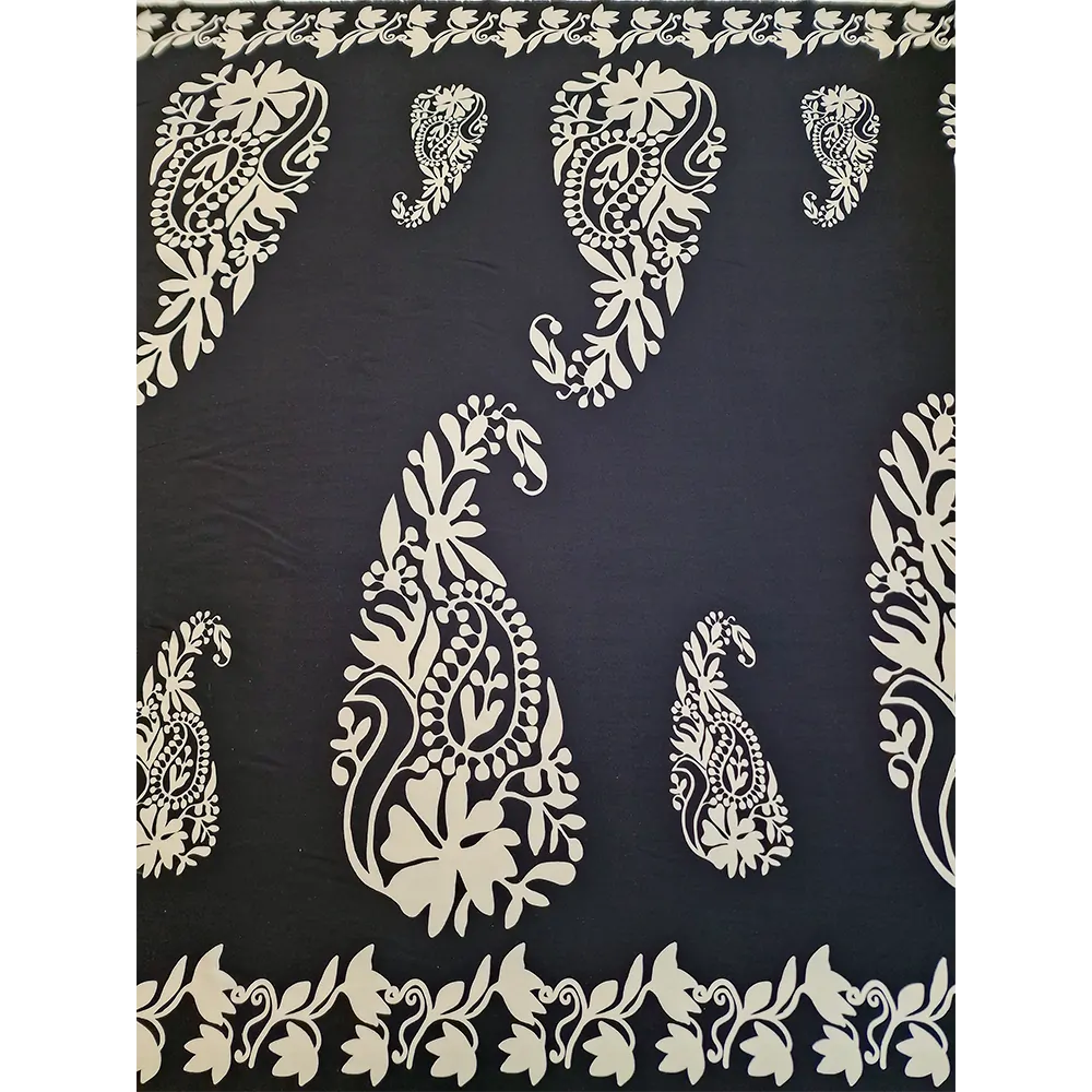 viskózové plátno, bílý vzor, černá
