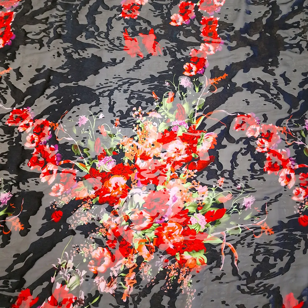 hedvábí DEVORÉ, červené květy1 090 Kč/ m901 Kč bez DPH