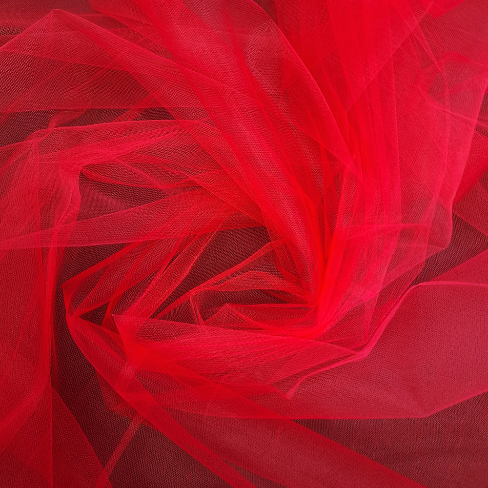 Polyamidový tyl , šíře 280 cm, jemný , červená barva. Vhodný na závoje, vrchní sukně, dekorace.