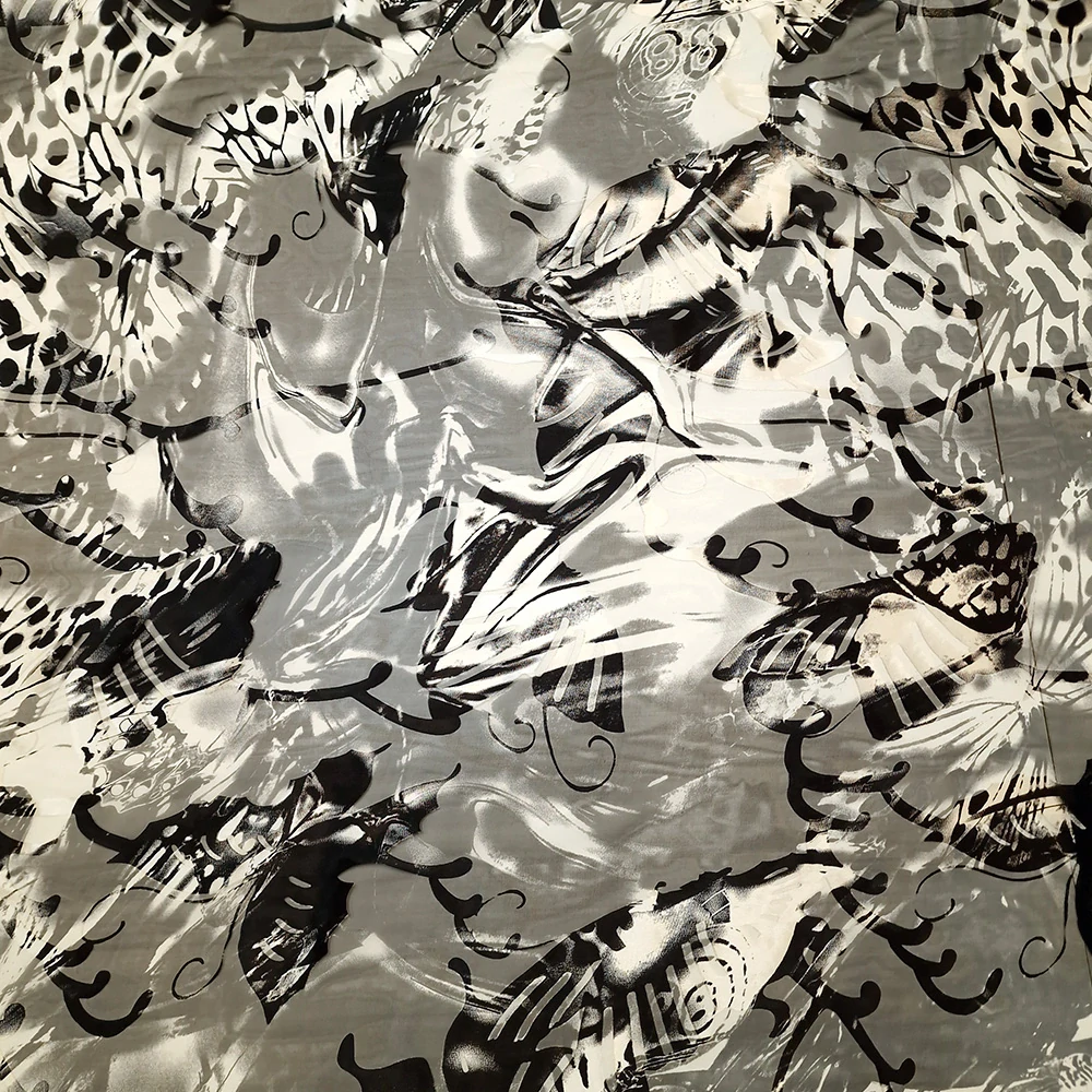 hedvábí DEVORÉ, bílo/černo/šedý vzor