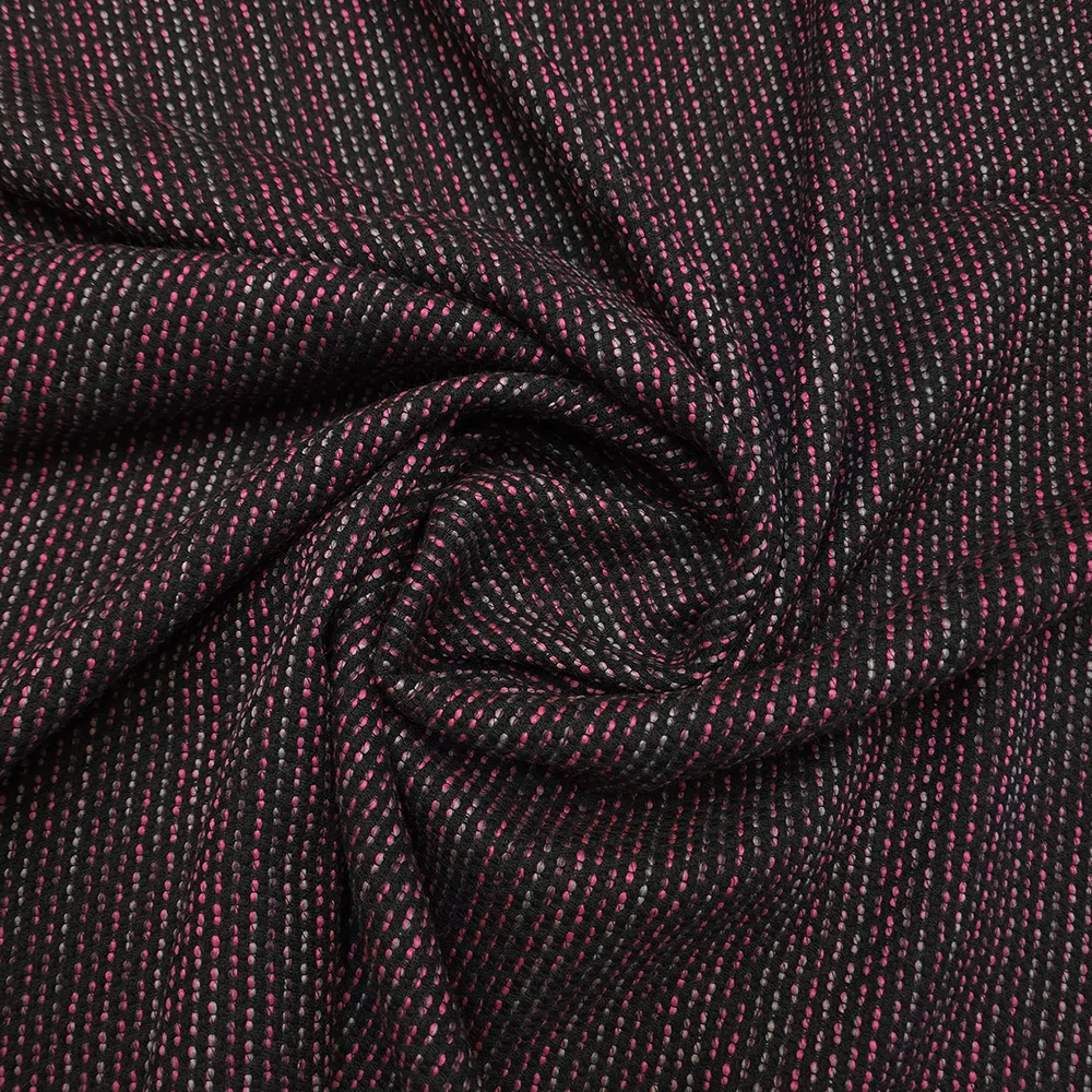 Kostýmovka buklé typu Chanel, velmi měkká a příjemná, bordó na černém podkladu, 60% polyamid, 34%/ vlna, šířka 150 cm, vhodné na saka typu Chanel, sukně, vesty, kostýmky.