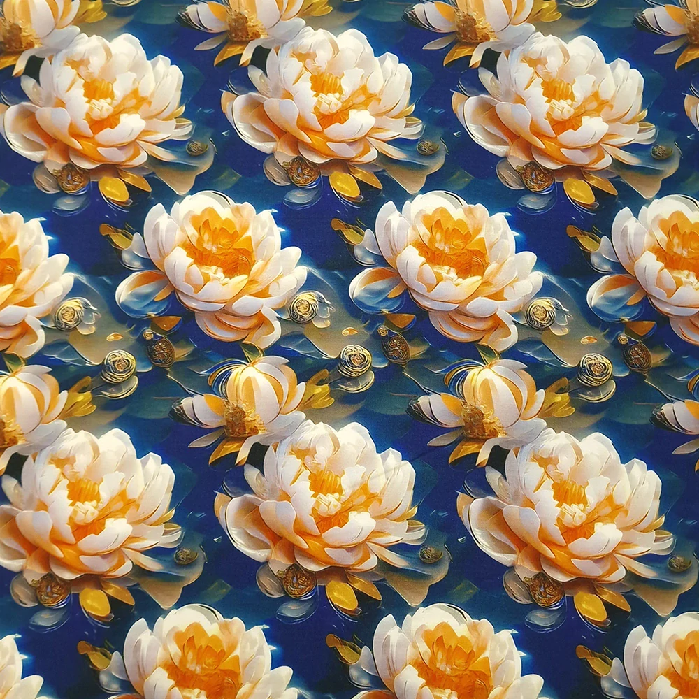 viskózové plátno s hedvábím, vzor lotus450 Kč/ m372 Kč bez DPH