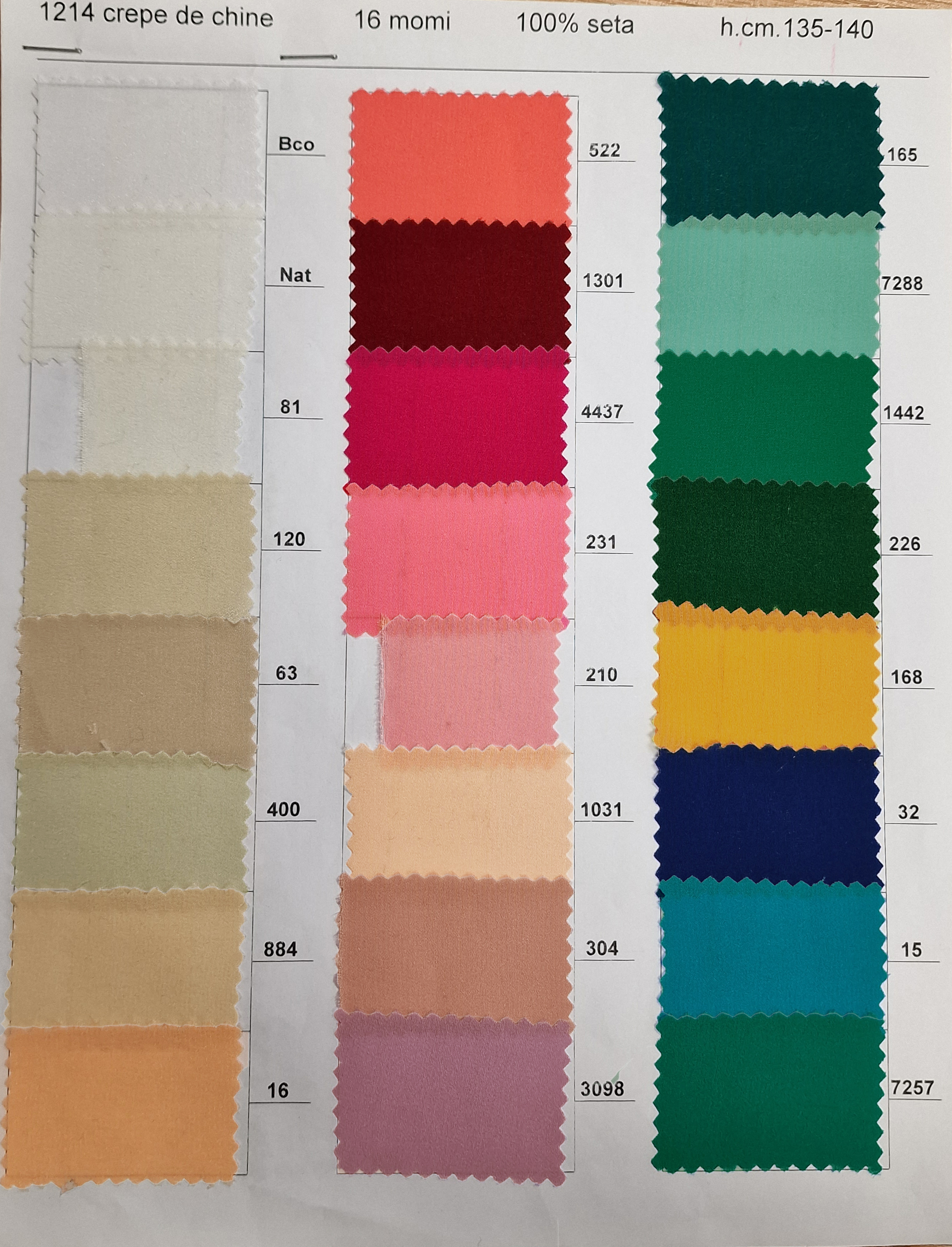 Hedvábí 100% - Crepe de chine, objednání podle barevnice (min. 5m od barvy)