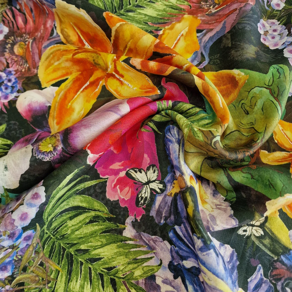len, vzor květy, černá850 Kč/ m702 Kč bez DPH