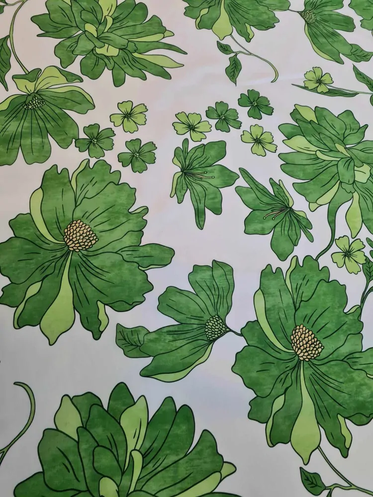 popelín elastický, veké květy, zelená