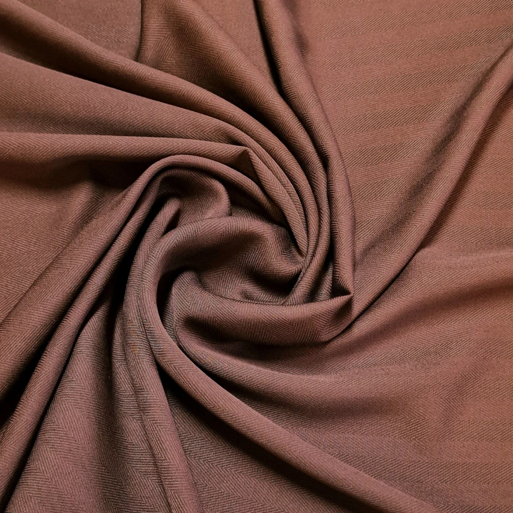 Šatovka, 100% viskóza s vytkaným vzorem rybí kost, neprůsvitná, měkká, velmi splývavá, chladivá a příjemná. Šíře 150 cm.