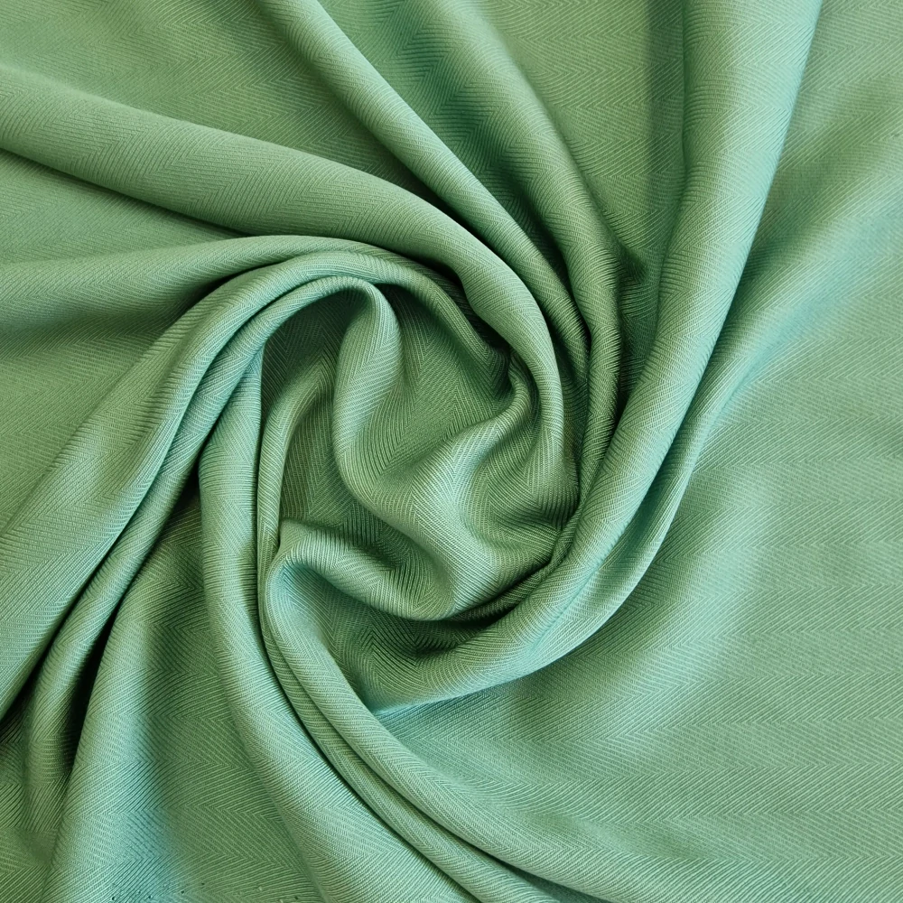 Šatovka, 100% viskóza s vytkaným vzorem rybí kost, neprůsvitná, měkká, velmi splývavá, chladivá a příjemná. Šíře 150 cm.