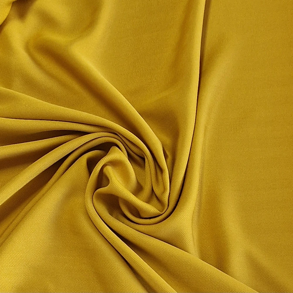 Šatovka, 100% viskóza s vytkaným vzorem rybí kost, neprůsvitná, měkká, velmi splývavá, chladivá a příjemná. Šíře 150 cm.