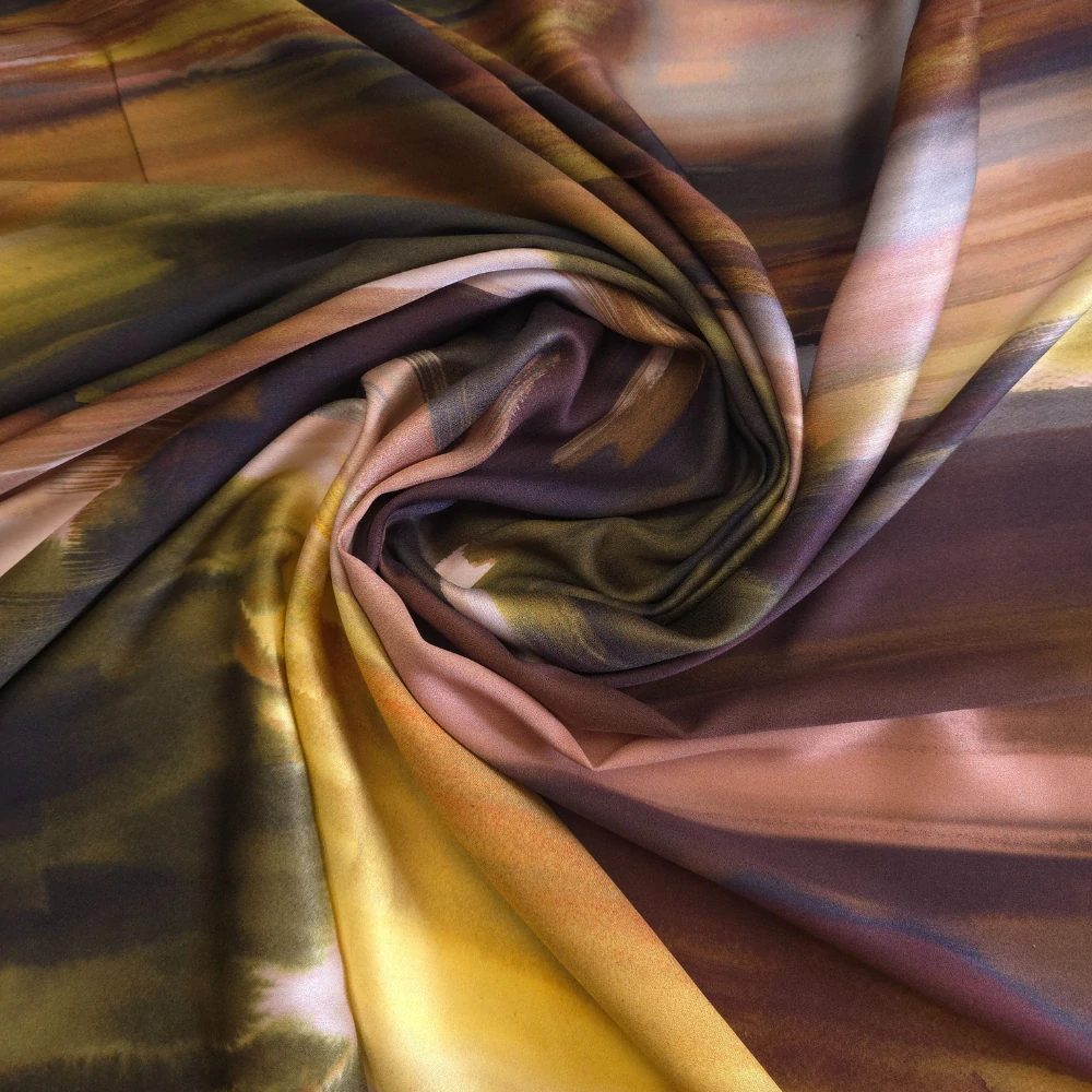 viskózový satén, khaki/hnědá/žlutá